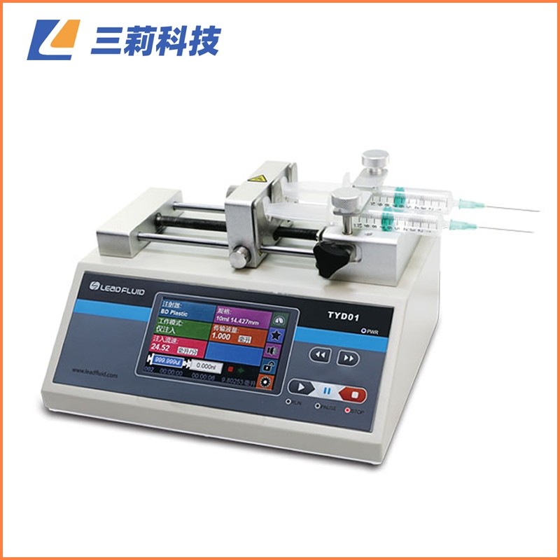 ● TYD01-02型實(shí)驗(yàn)室注射泵采用一體化臺(tái)式設(shè)計(jì),4.3寸高清液晶觸摸屏顯示及操作,可裝卡2支塑料注射器或玻璃進(jìn)樣針,注射器容量范圍寬至10μL~60mL,流量范圍0.184nL/min~83.318mL/min;