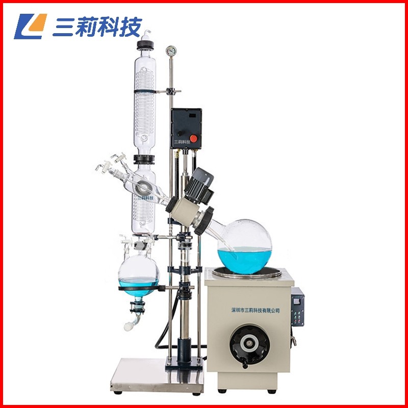 簡介:旋轉蒸發器是在真空負壓條件下,利用恒溫加熱,薄膜蒸發的原理研制而成。旋轉蒸發器用無級調速使玻璃旋轉瓶恒速旋轉,物料在瓶壁形成大面積均勻薄膜,再由智能恒溫水浴鍋對旋轉瓶均勻加熱,在真空條件下高速蒸發,溶媒蒸氣經高效玻璃冷凝器冷卻,回收于收集瓶。