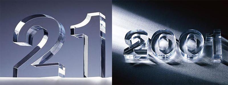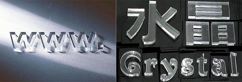水晶字常用于專賣店展柜眉頭字、公司logo墻、標牌廣告、門頭店招等標識導向系統的制作,越是有創意、有個性,便越是能吸引人,提升自身競爭力。水晶字是用化學藥水將透明有機玻璃跟有色有機片粘合起來組合而成。平時我們見到的水晶字都是雙層的而且比較大、比較引人注目,在制作水晶字前都是將透明玻璃和有色有機片分開雕刻切割。