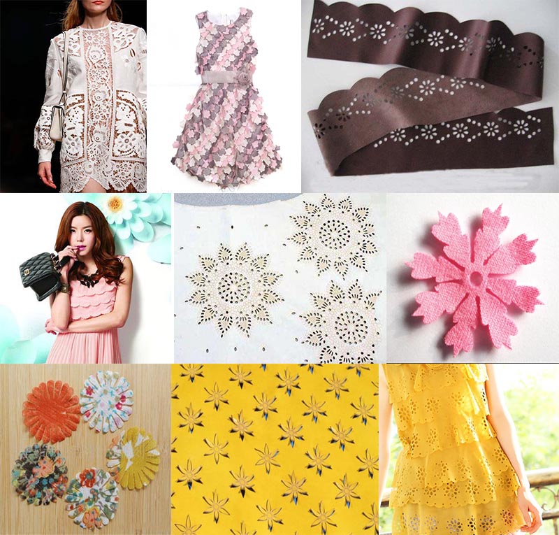 激光切割機集雕刻、切割、鏤空、印花、打孔等工藝為一體,可以滿足不同的審美需求,像服裝印花、流行元素貼布繡、圖像印制等。而且激光加工精準度高,避免錯誤發生,造成材料浪費,所需文本在電腦中可用就保留。激光切割節約排版時間、而且可以混合排版,提高材料利用率,提升工作效率,激光加工的優勢遠遠不止這些。