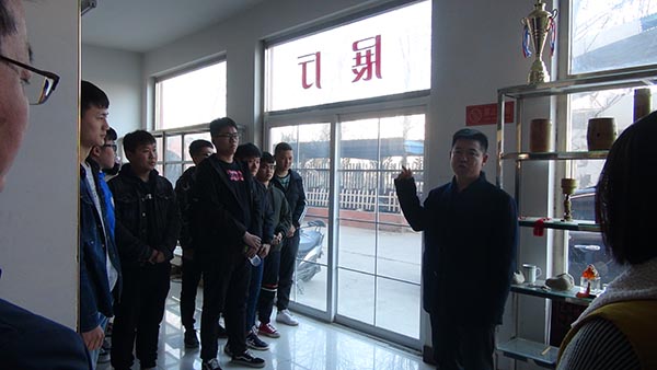上午9:30,總經(jīng)理曹立功及陪同人員帶領(lǐng)聊大師生參觀了神繪展廳,為大家介紹了公司發(fā)展歷程、主營(yíng)產(chǎn)品、雕刻樣品等。神繪激光總經(jīng)理曹立功首先代表全體職工對(duì)聊大師生的到來,表示熱烈的歡迎。