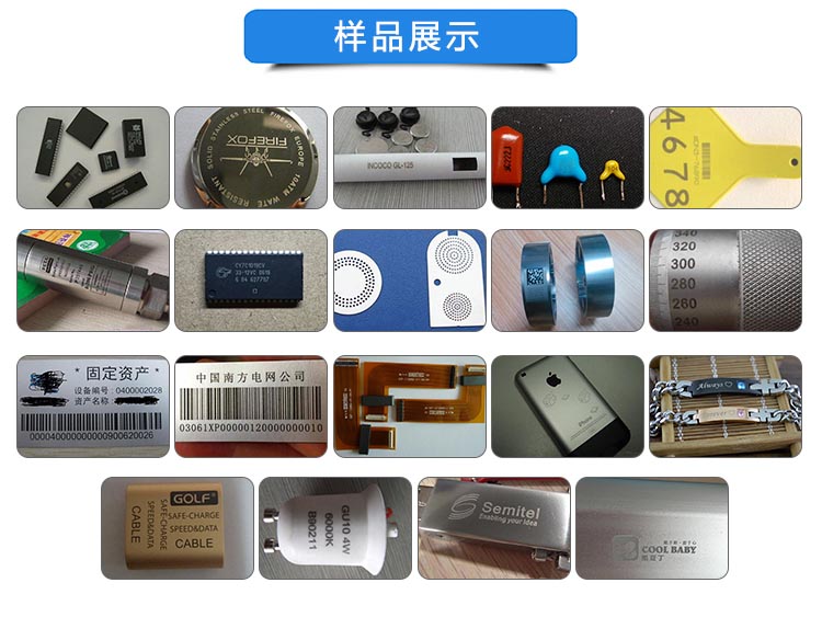 適用于玻璃、高分子材料等物體表面打標、微孔加工、柔性PCB板、LCD、TFT打標、劃片切割、金屬或非金屬鍍層去除、硅晶圓片微孔、盲孔加工;化妝品、藥品、其他高分子材料的包裝瓶、柔性pcb板打標,劃片;禮品、LCD液晶玻璃二維碼打標、玻璃器具表面打孔、金屬表面鍍層打標、塑膠按鍵、電子元件、通訊器材、建筑材料等等。