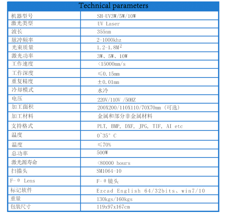特點:穩(wěn)定的全風冷紫外激光,高精度溫度控制PID算法,可選擇多種模式進行首脈沖抑制,達到很好的抑制效果。靈活的控制方式,全參數(shù)的內(nèi)外控選擇,適合不同應(yīng)用的客戶控制要求;大功率風冷紫外激光器正在研發(fā)中, 光束質(zhì)量好,聚焦光斑更小,能實現(xiàn)超精細標記。紫外激光除銅材質(zhì)意外,適合加工的材質(zhì)更加廣泛,熱影響區(qū)域極小,不會產(chǎn)生熱效應(yīng),不會產(chǎn)生材料燒焦問題,標記速度快,效率高,整機性能穩(wěn)定,體積小,功耗低等優(yōu)勢,適用范圍更加廣泛。