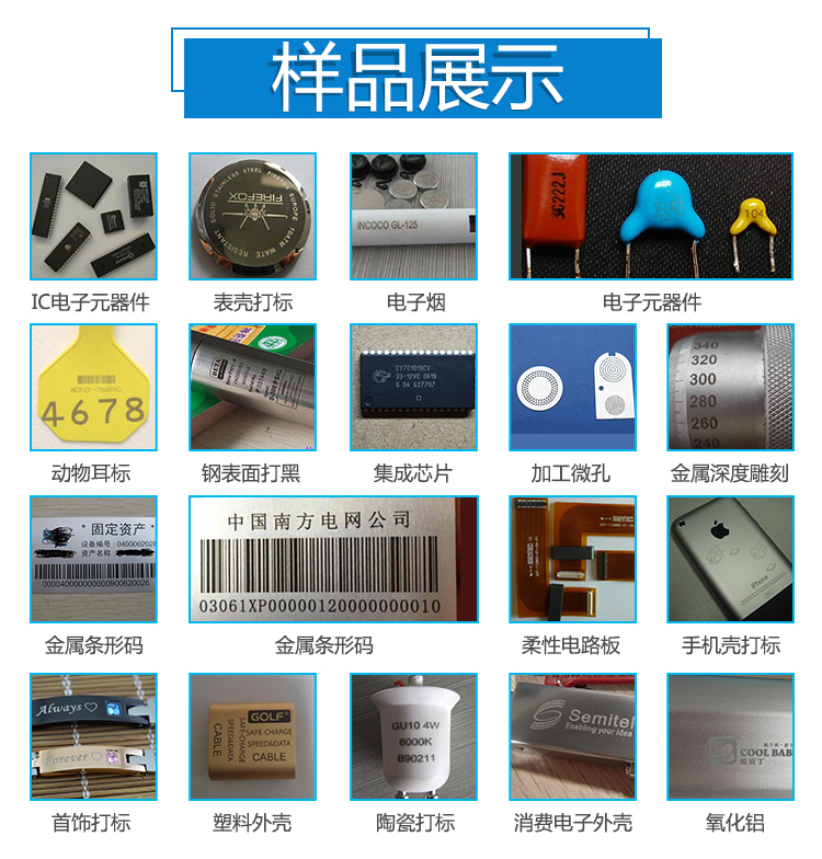 紫外激光打標機的功能特點:廣泛應用于航天航空器件,集成電路芯片,食品飲料煙草包裝等領域;光束質量高,光斑非常小,能實現超精細標刻;熱影響區域非常小,不會有熱效應,材料不變形,不燒焦;標記速度快,效率高,整機性能穩定,體積小,功耗低;可進行條形碼、二維碼、文字圖形,規則不規則流水號打標。