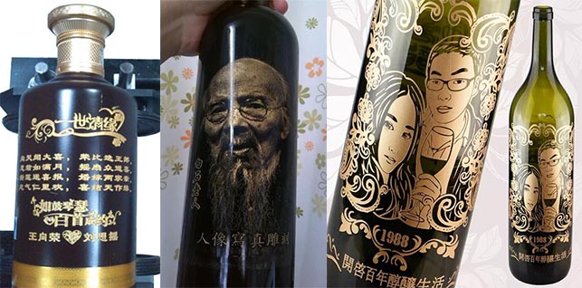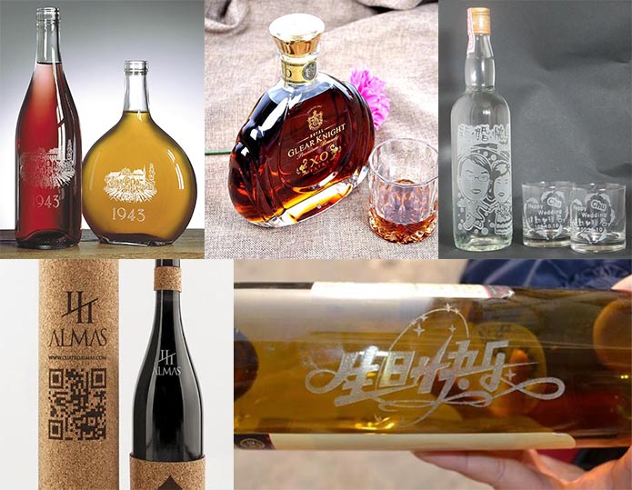 白酒、紅酒、玻璃酒瓶激光雕刻樣品圖