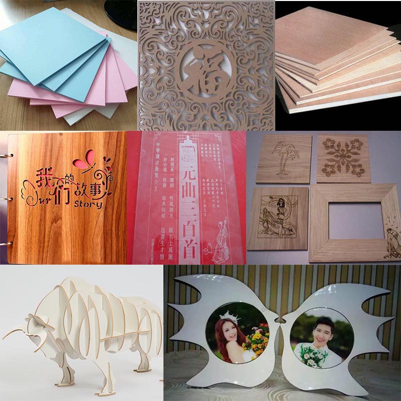 實木板、中密度版、夾合板、木塑板、亞克力板等激光加工樣品圖