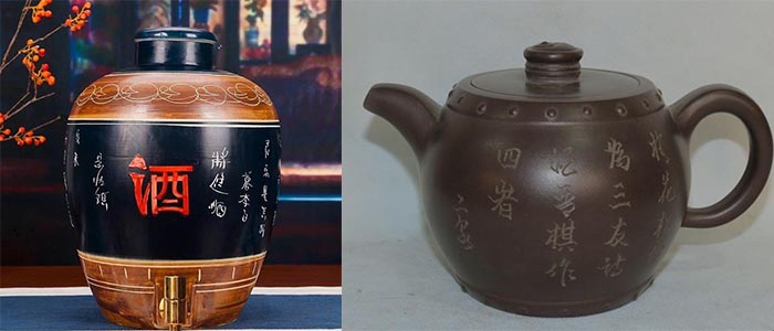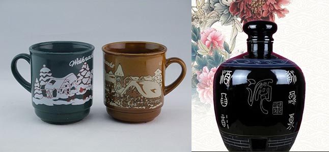 陶瓷、水杯、酒壇、紫砂壺激光雕刻樣品圖