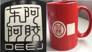 剝除黑色釉層要用到較大功率、較大的單脈沖能量。由于杯子有一定的弧度,所以選擇較大的場鏡。60W-LM1-L1激光器使用脈寬100ns,標刻出的底紋較細膩,使用脈寬200ns效率高,但底紋較粗糙。