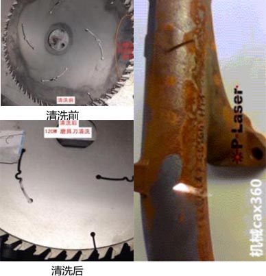 將直徑200mm的鋸片表面銹跡清洗干凈。此工藝可以應用于工廠許多設備零部件上有各種臟污殘留以及銹跡等,傳統清洗方法對于環境的污染較為嚴重,而用激光清洗將更為環保清潔。