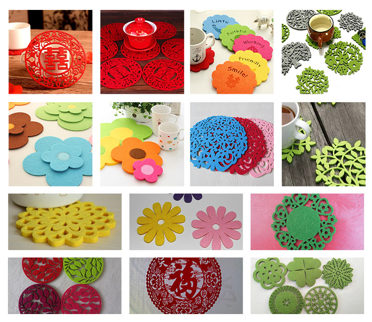 無紡布毛氈杯墊、餐墊激光雕刻切割樣品: