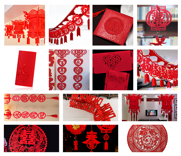 婚慶用品主要是指結婚婚禮上所使用的產品和道具,隨著婚慶行業的不斷發展,無紡布婚慶用品也是花樣繁多?;閼c活動所需的各種烘托氣氛的裝飾品,比如:婚慶拉花、燈籠、喜字窗花、立體掛件、紅包、請帖、結婚小對聯等。無紡布婚慶制品色彩豐富、鮮艷明麗、時尚環保、美觀大方,圖案和款式都多樣,且質輕、環保、可循環再用。